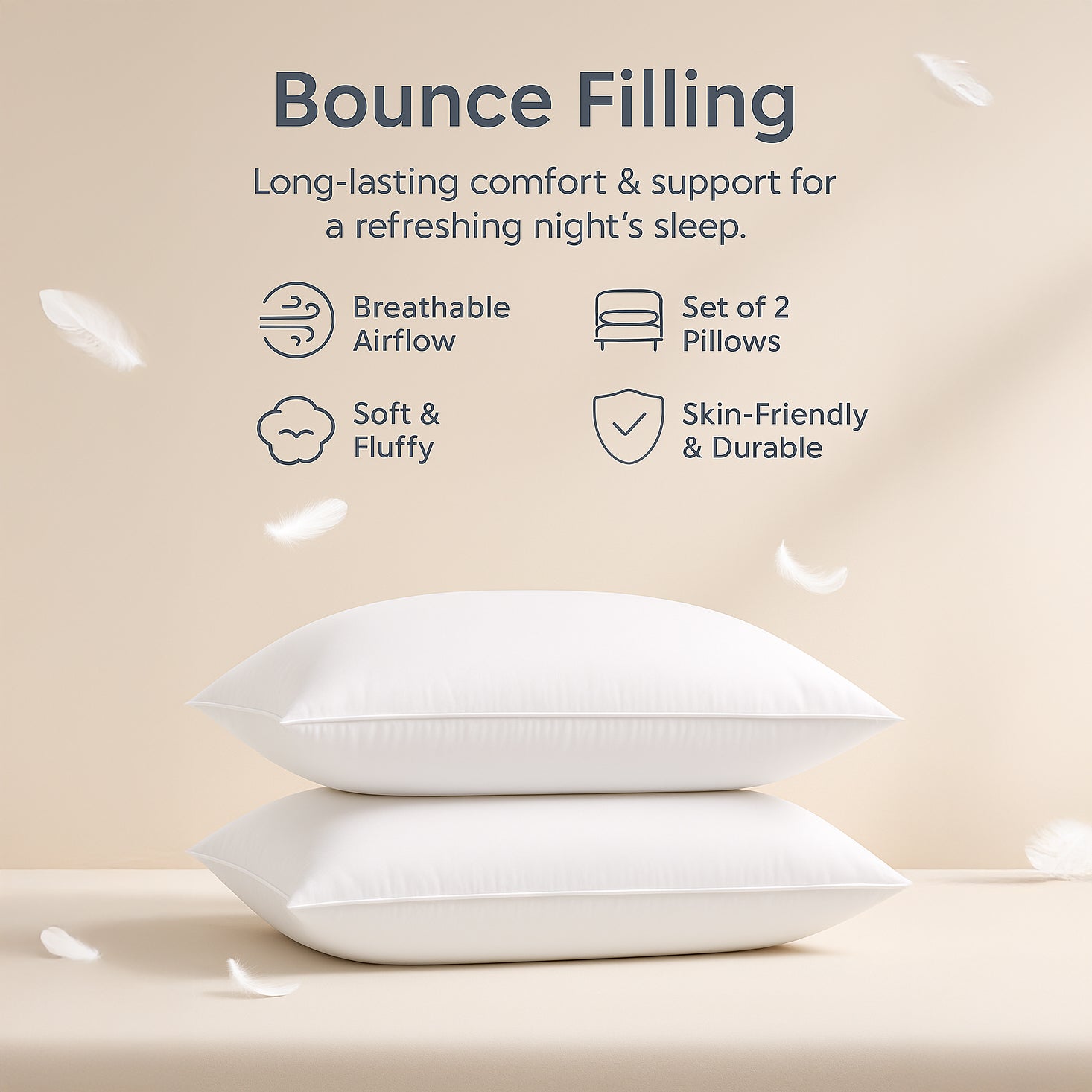 Experience hotel-style comfort at home with our premium Pack of 2 Hollowfibre Filled Microfiber Pillows. Designed for ultimate softness and support, these pillows strike the perfect balance between plush comfort and firm support, ensuring a restful night’s sleep. The breathable microfiber fabric keeps you cool, while the hypoallergenic hollow fiber filling ensures a healthy and irritation-free sleeping environment. Ideal for all sleeping positions – back, side, or stomach – these pillows are crafted to maintain their shape and fluffiness even after multiple washes.