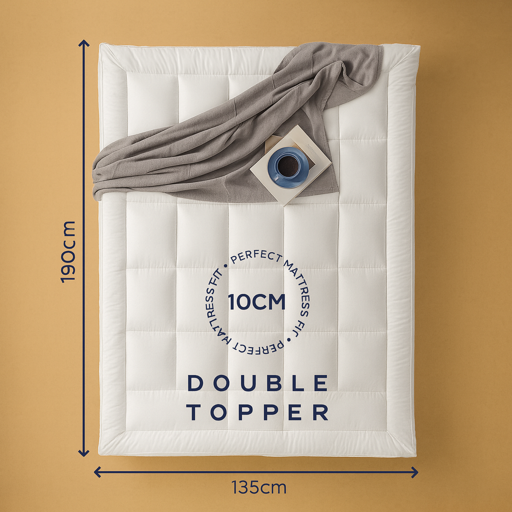 Upgrade your sleep with our Luxury Mattress Topper, designed to add an extra layer of softness and support to any mattress. Crafted with premium filling and a breathable fabric cover, this topper enhances comfort while promoting airflow for a cooler, more refreshing night’s rest. Its hypoallergenic design makes it suitable for sensitive sleepers, while the elasticated corners ensure a secure fit that stays in place all night. Easy to maintain and machine washable, this topper is the perfect solution to revive an old mattress or boost the comfort of a new one.